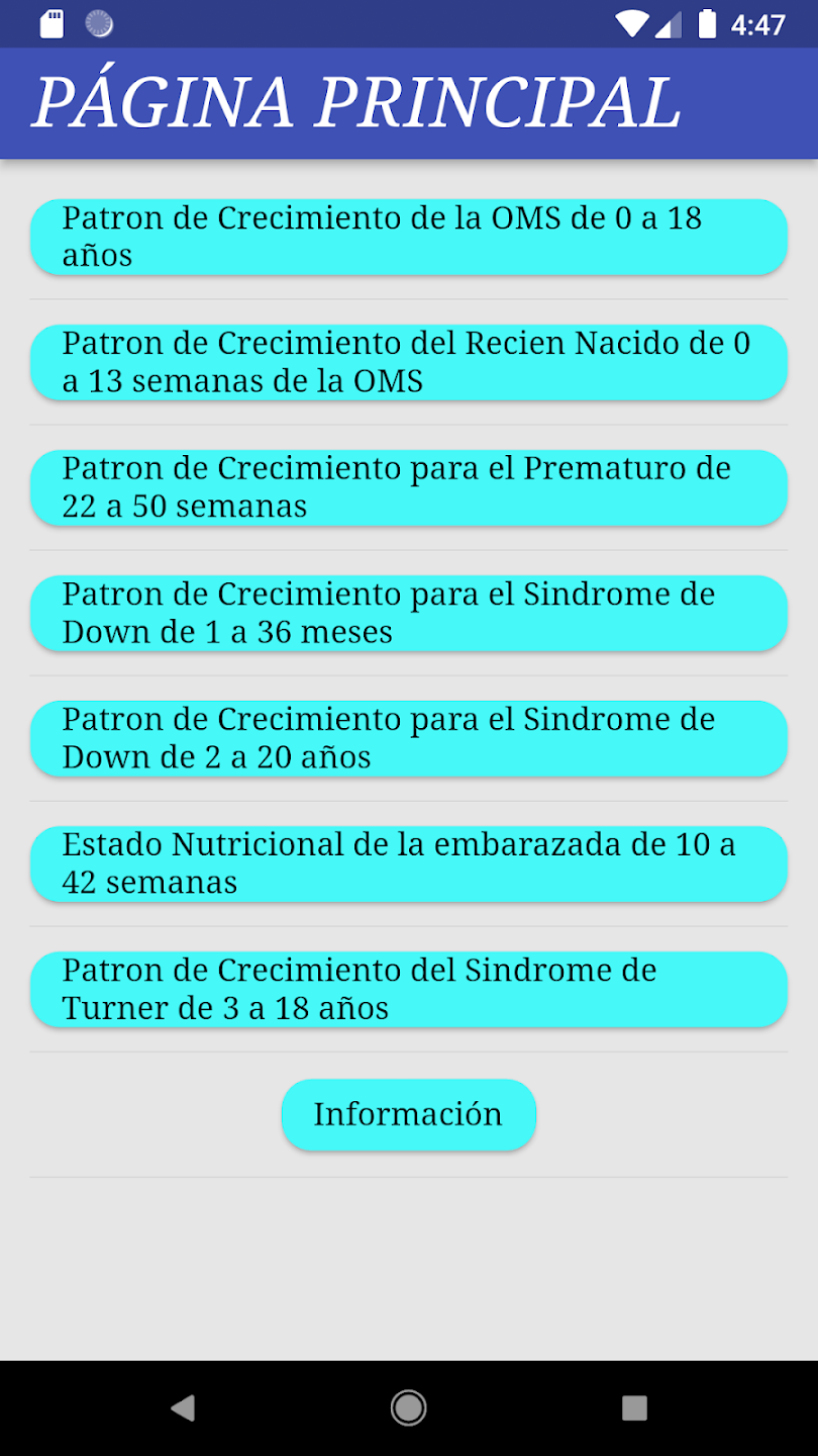 Aplicación móvil desarrollada en Flutter para evaluar el estado nutricional de diferentes poblaciones y su crecimiento en menores de 18 años. Se Tomo de referencias la información de la OMS.