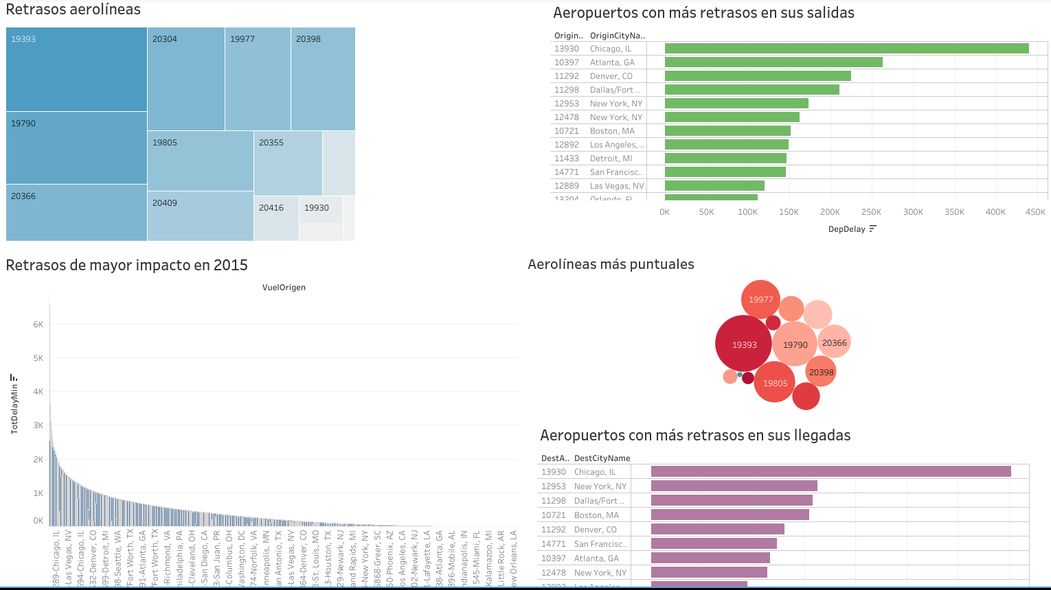 Dashboard diseñado con tableau, el objetivo es analizar el comportamiento de los retrasos en vuelos comerciales.