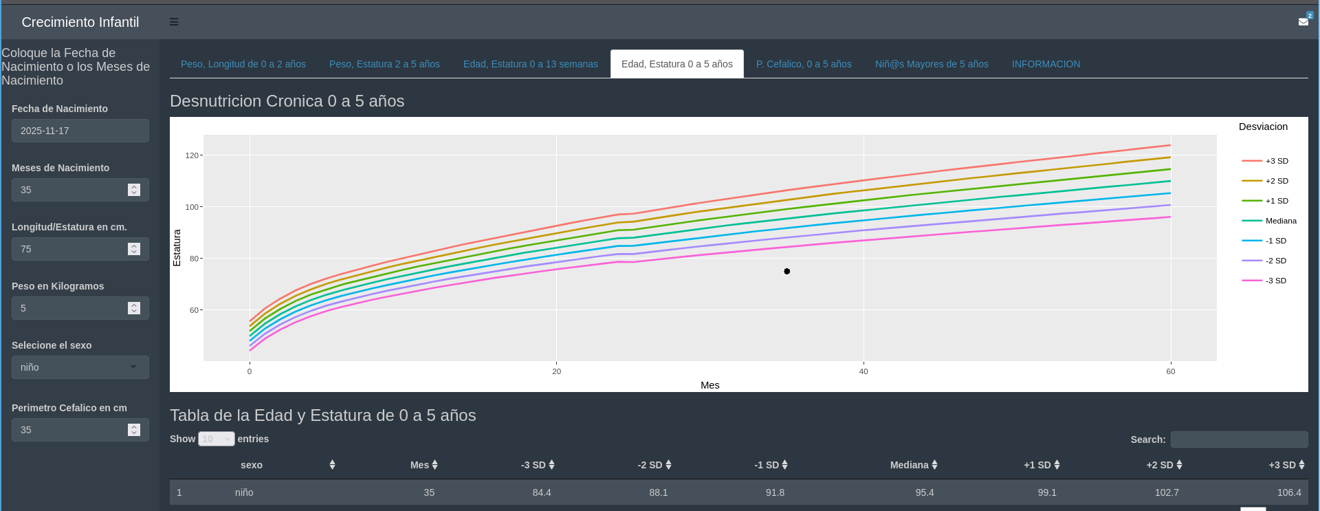 Aplicación web sobre la tabla de crecimiento infantil
